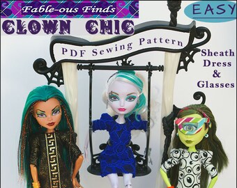Fable Ous Finds Clown Chic Sheath Dress And Glasses Doll Clothes Pattern 17 Inch Fashion Dolls